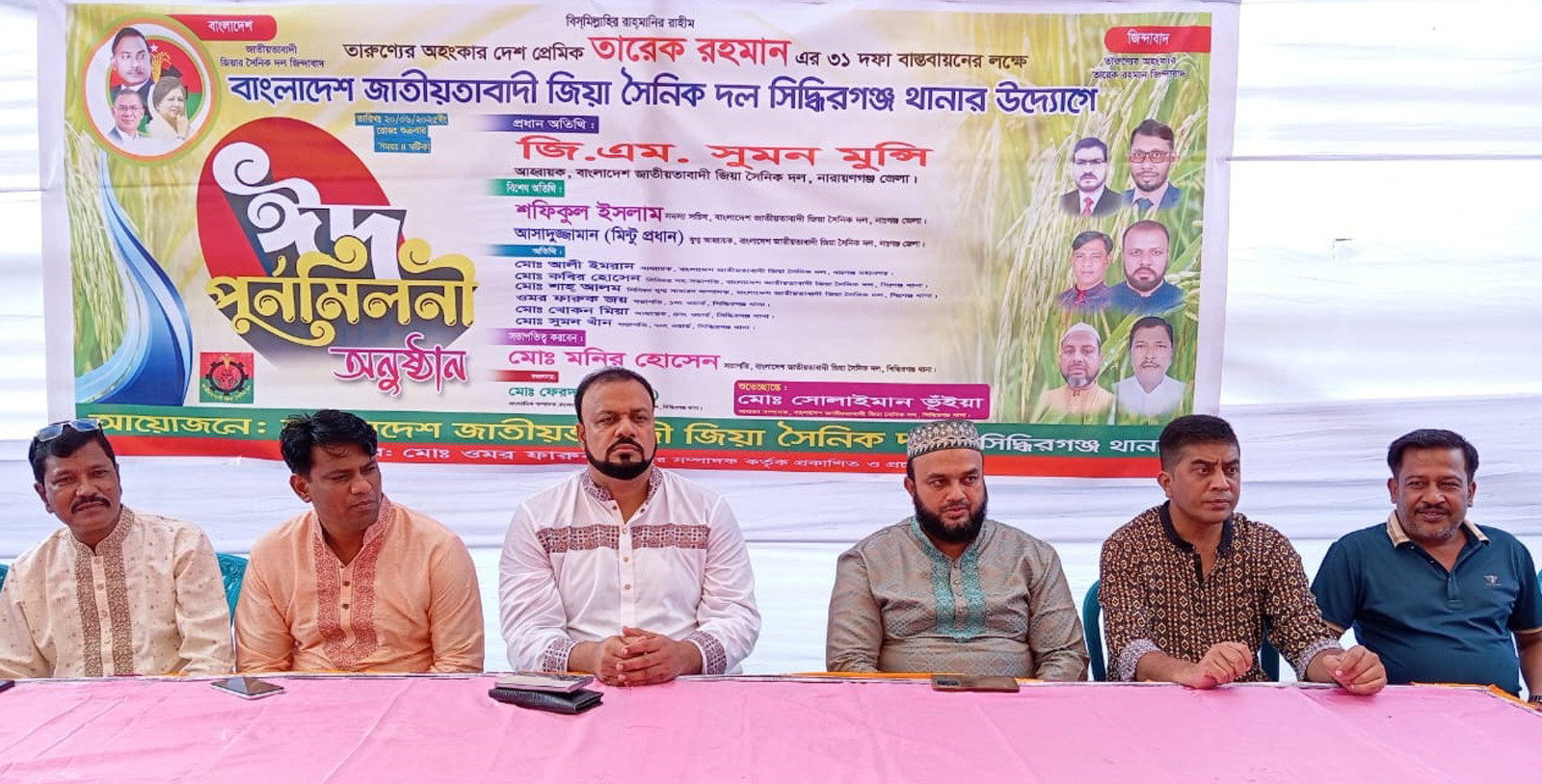 বাংলাদেশ জাতয়িতাবাদী দল বিএনপি’র ভারপ্রাপ্ত চেয়াম্যান তারেক রহমান ঘোষিত রাষ্ট্র মেরামতের ৩১ দফা অবিলম্বে বাস্তবায়ন করতে হবে, আমরা জাতীয়তাবাদী জিয়া সৈনিকদল ৩১ দফা বাস্তবায়নে জনগনের দোড় ঘোড়ায় আমাদের যেতে হবে এ কথা বলেছেন বাংলাদেশ জাতীয়তাবাদী জিয়া সৈনিক দলের কেন্দ্রীয় যুগ্ন সাধারন সম্পাদক ও নারায়ণগঞ্জ জেলার আহবায়ক গোলাম মোস্তফা সুমন। শুক্রবার (২০ জুন) বিকেলে জিয়া সৈনিক দল সিদ্ধিরগঞ্জ থানা শাখার উদ্যোগে আয়োজিত তারেক রহমানের ৩১ দফা বাস্তবায়ন ও ঈদ পুর্ণমিলনী অনুষ্ঠানে প্রধান অতিথি হিসেবে উপস্থিথ থেকে তিনি এ কথা বলেন।