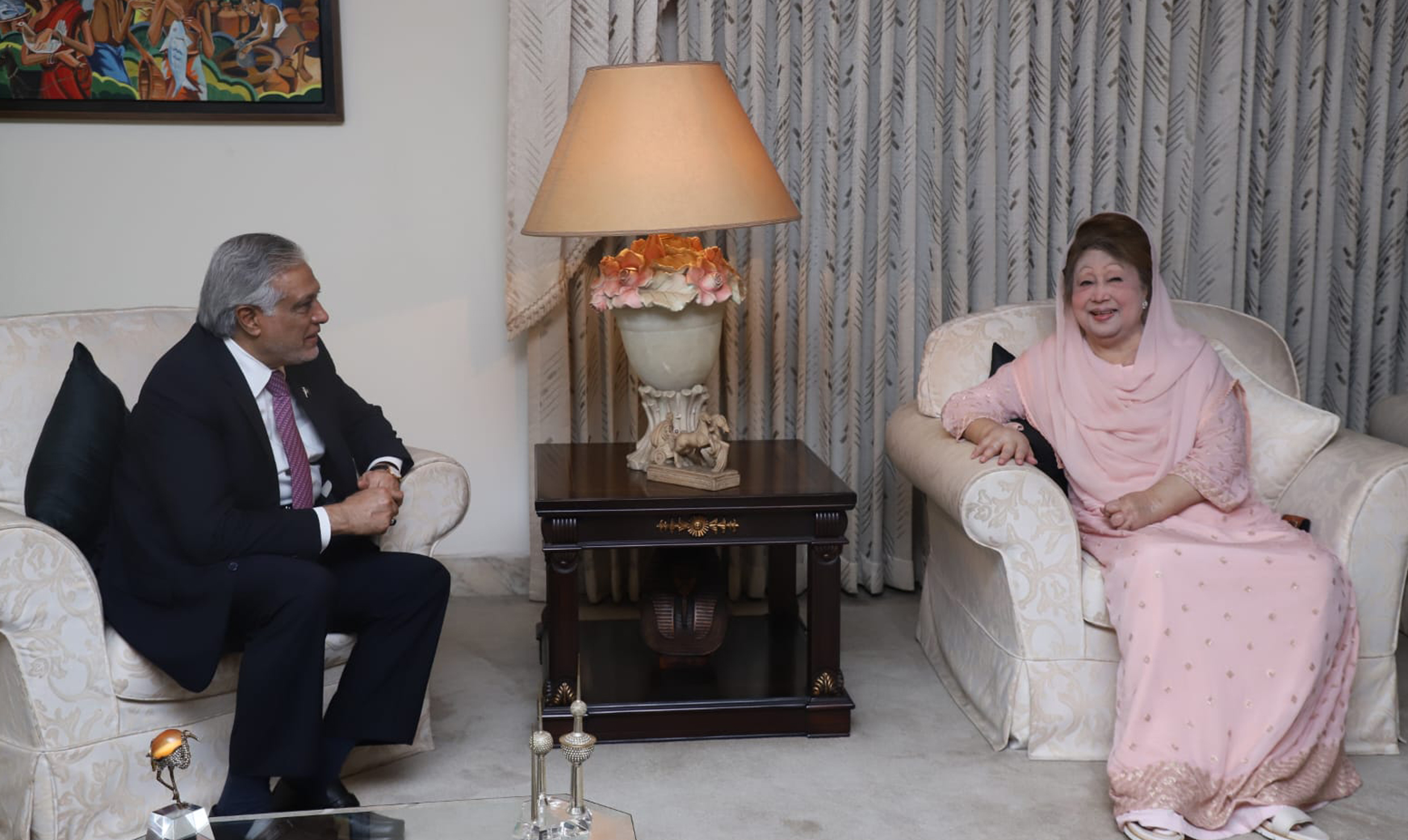 বিএনপির মিডিয়া সেলের সদস্য শায়রুল কবির খান বলেন, বেগম খালেদা জিয়ার স্বাস্থ্যের খোঁজ নিতে তার বাসায় এসেছেন বাংলাদেশ সফররত পাকিস্তানের উপ-প্রধানমন্ত্রী ও পররাষ্ট্রমন্ত্রী ইসহাক দার।
