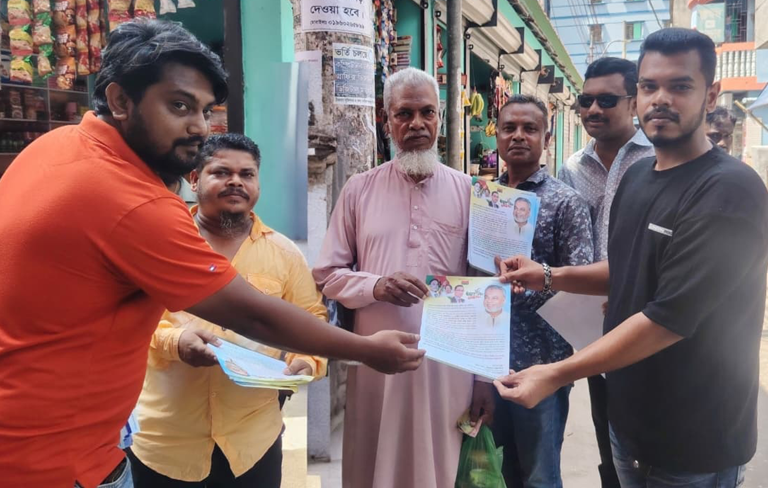 নির্বাচনের গনসংযোগ ও লিফলেট বিতরনের সময় সিদ্ধিরগঞ্জ থানা ছাত্রদল ও বাংলাদেশ জাতীয়তাবাদী মুক্তিযুদ্ধের প্রজন্ম দল সিদ্ধিরগঞ্জ থানা কমিটির নেতৃবৃন্ধ এলাকার সাধারন মানুষ, ব্যাবসায়ী ও পথচারীদের উদ্দেশ্যে বলেন, আসন্ন জাতীয় সংসদ নির্বাচনে নারায়ণগঞ্জ ৪ আসনের সাবেক সাংসদ গিয়াস উদ্দিন এবার নারায়ণগঞ্জ ৩ (সিদ্ধিরগঞ্জ-সোনারগাঁও) আসন থেকে ধানের শীষ প্রতীক নিয়ে নির্বাচনে অংশগ্রহন করবেন তাই আমরা তার নির্বাচনী সালাম সাধারন মানুষ ও এলাকার প্রতিটি ঘরে ঘরে পৌছে দিতেছি।