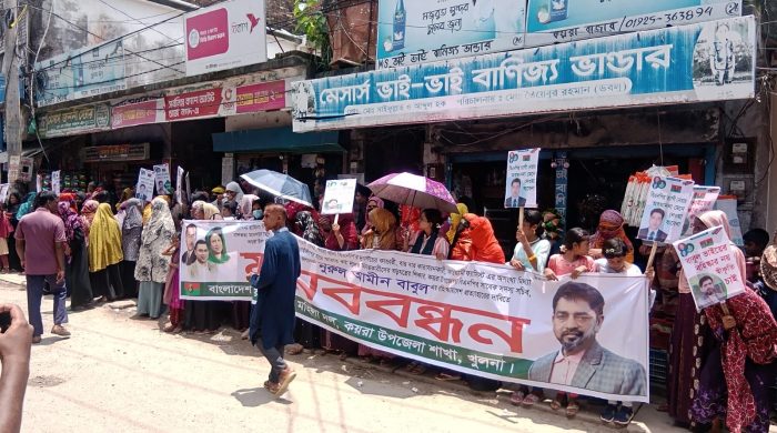কয়রায় উপজেলা বিএনপির সদস্য সচিব নুরুল আমীন বাবুলের বহিষ্কার আদেশ প্রত্যাহারের দাবিতে মানববন্ধন
