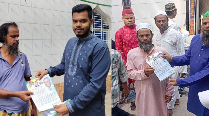 সিদ্ধিরগঞ্জে বিভিন্ন মসজিদে গিয়াসউদ্দিনের পক্ষে নির্বাচনী লিফলেট বিতরন