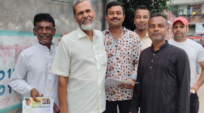 সিদ্ধিরগঞ্জে সাবেক সাংসদ গিয়াস উদ্দিনের পক্ষে নির্বাচনী গণসংযোগ ও লিফলেট বিতরন